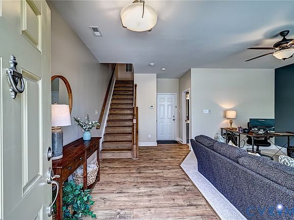 Opportunity knocks, you really should answer! $60k+ below new = lower payment and still all the desirable finishes. Enjoy a prime location that's walkable to Publix, Starbucks, Klines Dairy Bar, and other local spots. Within the community, you'll love easy access to the pool, clubhouse, dog park, playground, and garden. This lovingly cared-for one-owner home has been pet-free and smoke-free since day one. The main level features an open entertainment and/or office space, along with a full bath. If you prefer a third bedroom or closed study layout, the sellers have a quote and will credit the $4,200 at closing for you to modify. An oak staircase leads you to the 2nd level with a center kitchen layout that serves as a social hub between the great room and dining room. It features a huge island with an undermount sink, gas cooking, granite counters, staggered height upper cabinetry, and a pantry. Off the great room is the rear porch, and at the front of the home, the dining room has a Juliet balcony. The 3rd floor offers two primary suite options with attached baths and walk-in closets. The rear primary bath features a double vanity and a spacious tile shower. If top-rated schools are on your must-have list, you'll be thrilled that the zoning includes Woolridge Elementary, Deep Creek Middle, and Cosby High. All the top retailers are along Hull Street, but you can easily avoid traffic by utilizing the newly expanded Otterdale and Woolridge Roads. You'll appreciate the guest parking directly across the street, as well as nearby activities such as golf at Magnolia Green or Birkdale, miles of dedicated bike lanes, Pocahontas State Park, and the Swift Creek Reservoir. If energy efficiency is top of mind, you'll appreciate that this home meets the strict guidelines set by the EPA's Energy Star program. Recent association changes to the allowable number of rentals make it easier for investors to rent sooner - openings on the list now. Plus, a true 2-car garage with heavy-duty overhead storage - you really can have it all!