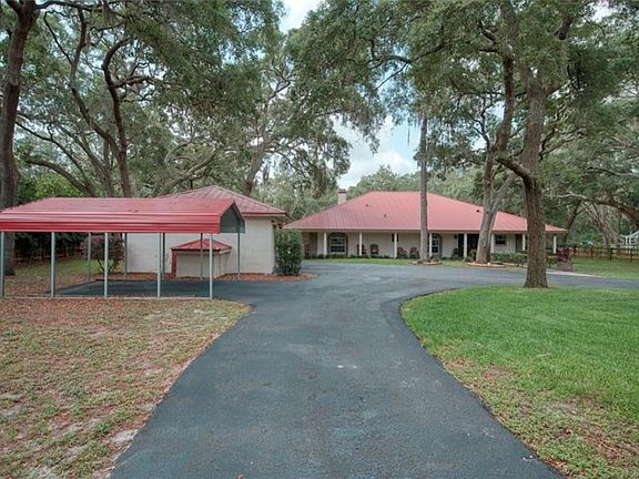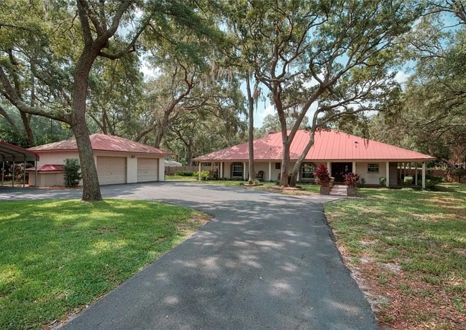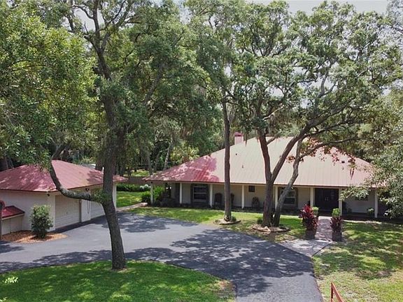 This beautiful Contemporary style home is located in the sought-after Highlands market area nestled away on a 1.14-acre home site with (AR) agricultural residential zoning. Kittrell Drive is a quiet street with custom built homes enjoying ample setbacks from one another on sprawling home sites. The home site is fully fenced with an electric gate at each end of the circular driveway. All activities on the site are monitored by 8 cameras which are further enhanced by a security system. This ample size home offers 2700-sf of living area with an additional 1188-sf of wrap-around porch and a rear lanai. The inviting, heated inground screened pool area is complemented by brick pavers which extend well beyond the pool enclosure to create a resort type setting with hot tub, pergola and a wet bar. There is plenty of room for your toys in the 520-sf detached garage, adjacent carport and detached metal utility building. From the moment you enter this beautiful home you will be impressed by the abundance of space and open design concept. The living room, dining room and kitchen feature a 10-ft interior wall height with crown molding, decorative soffit shelving and chair rail. The ceramic tile floor which looks like wood planking flows uniformly throughout the entire home. The living room features a full wall brick wood burning fireplace with a built-in entertainment center. There are two sets of French doors leading from the living room out to the lanai. The master bedroom suite also features two sets of French doors, one set leads to the lanai, the other leads to a brick paver patio area with a hot tub. The kitchen features wood cabinets with a brick backsplash, granite countertops, center island and upgraded stainless steel appliances. The guest bathroom features a custom wood vanity with a granite countertop, walk-up jetted garden tub with an adjacent stall shower with cedar accents. The laundry room features a stackable washer and dryer, slop sink, utility closet and an abundance of cabinetry and counter space. The master bathroom features a custom wood vanity with dual sinks, granite countertops, walk-up jetted garden tub with brick and cedar accents, stained glass window, a separate stall shower and ample size walk-in closet with custom built-ins. The pool bathroom is adjacent to the bar area and is accessible from the lanai and the interior of the home. This is not an ordinary pool bathroom as it features a steam room / shower combination with seating. Additional features include a double entryway, cedar ceilings on the wrap-around porch and lanai, whole house generator, salt water softener, dual garage door openers with a remote, decorator light fixtures / ceiling fans, metal roof, expansive circular asphalt driveway, mature shade trees, exterior lighting and more. If so, desired the home can be purchased with all remaining furnishings. Schedule your showing today!