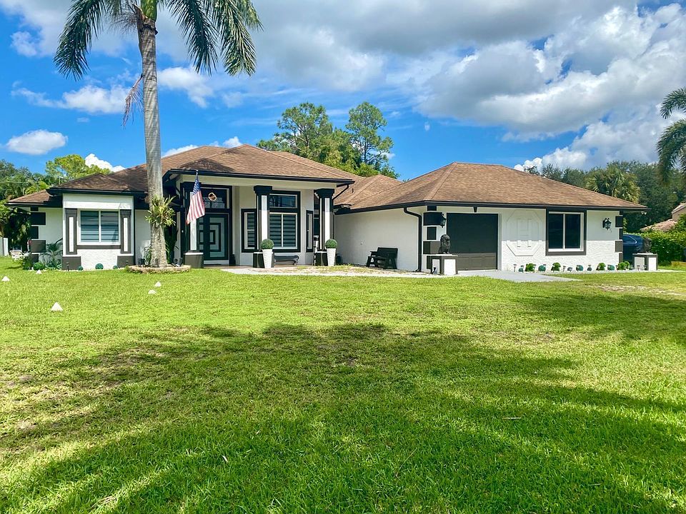 Beautiful house located on 1.15 acres has 4 spacious rooms all with their walking closet +1 office and 5 bathroom plus additional room all open design.New floor ,high ceiling,kitchen cabinets and modern appliances with central island .It also has an indoor laundry room and garage for 3 cars,irrigation system and different types of fruit trees and palm trees .In the large backyard you can enjoy the tranquility of nature.Bring your boat ,pets now and don't miss the opportunity to make an offer now on the house of your dreams.