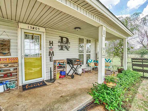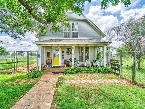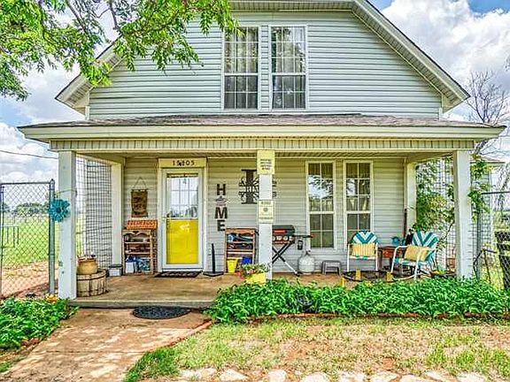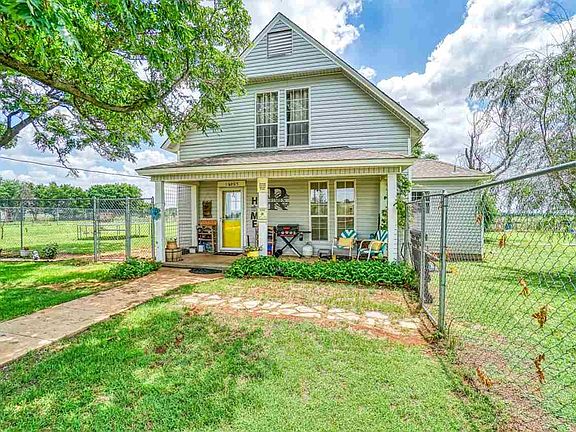 Updated, 4bedroom, farmhouse with approx. 1800sqft on 7 acres, 3/4 baths, 2 bedrooms upstairs and primary bedroom downstairs. Gas fireplace, large living area, LVP floors open to large kitchen and dining area, pantry. Granite counter tops, stainless steel appliances. Tile backsplash. Newer cabinets. Lazy Susan. Gas stove. Home was remolded in 2018. Big utility room. Big enough for extra freezer or refrigerator. Chain link horse fence, large chicken coop, several livestock pens and large 25.75x12.50 workshop. property is ideal for hobby, farmer house lover. call 580-248-8800 for private showing or text 580-581-7870 for more details.