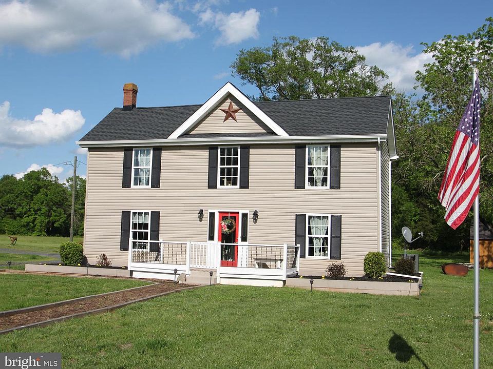 Charming 3 Bedroom, 1.5 Bath Farm house on 4 rural acres! Completely renovated in 2017, including new well, septic system, electric, plumbing, HVAC, insulation, windows, siding, appliances, and more. Brand new 50 yr architectural roof and 6" seamless gutters just installed May 2019. Kitchen offers table space, tile backsplash/accents, stainless steel appliances, lovely flooring, and original 1900s exposed beams! Sunlight-filled family room with a continuation of the exposed beamed ceiling. Wrought iron open stairwell leads to three bright bedrooms and lovely updated full bath, all with hardwood flooring. Large shed behind home. Front patio. No covenants/restrictions!