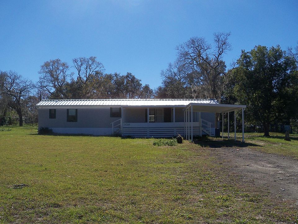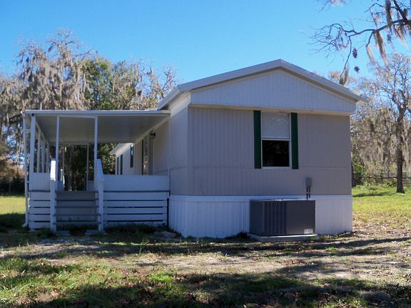 Active with contract. Accepting back up offers. This 2 bedroom 2 bath home on 1.18 acres has been updated with new window treatments, refinished cabinets and hardware, new ceiling fans, lighting fixtures and tile countertop. New waterproof laminate floors throughout. The bonus rooms have ceramic tile. Updated bathrooms with ceramic tile shower and new toilets. HVAC and duct system installed on 3/2019. New well pump system provides spring fresh water. The high and dry lot is fully fenced with a 6 foot high chain link and a privacy gate. Mature oaks on property provide shade and privacy. There is a one car carport in front and a two car aluminum carport in the back. There is a shed and several out buildings with space for farming or toys. All have electricity. Enjoy the Florida weather from the 12x24 covered front porch or the new wood deck in the back. No HOA!