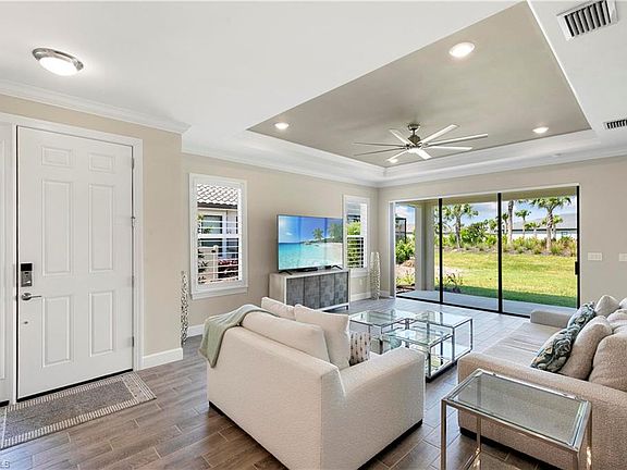 PRICE REDUCTION! Motivated Seller! Move-in ready and flawless, Ceretti floor plan in the exceptional community of Esplanade by the Islands developed by Taylor Morrison! This open-concept, newly built 3 bedroom, plus den & 2 full bathroom home features crown molding throughout, tray ceilings, an accent wall, plantation shutters, upgraded floors, appliances, and quartz countertops! Enjoy the light & airy, tastefully decorated and welcoming atmosphere! Relax by the satellite pool, fire pit and cabana just a short walk away. Perfectly located in between Naples and Marco Island, minutes from multiple shopping plazas and restaurants. Amenities include a resort style pool, tennis & pickleball courts, fitness center, culinary classes, a wine tasting room, Bahama bar, restaurant, spa, walking/jog paths and dog park! If you're looking for an easy, convenient transition into your new home, you've found it. Now is the time to start living the Southwest Florida lifestyle!