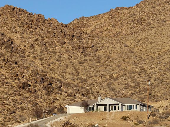 A Little Above the Rest of The World is how you will feel in this quiet and private desert retreat amid the rocky mountainous area. It has a million dollar view of the mountains and valley. The property goes over the rocky mountain area where you can ride motorcycles from your property, hiking, exploring nature and wildflowers. Breathtaking views and spectacular sunsets await you. The Koi pond gives you a feeling of comfort with the water fall feature. This delightful 2x6 construction home features 3 bedrooms, 2 baths, sunken bonus room, large living room with fireplace, Large open kitchen with breakfast bar. Kitchen has recently had range and range hood replaced. The fridge is included and sits among many oak cabinets and pantry for storage. The kitchen opens into large dining room which has a wired cabinet for a 100+ gallon fish tank. The laundry room is next to the kitchen with a utility sink, washer and dryer included. The large master bedroom has a fabulous view with a bay window and window seat with storage. The master bath has a jetted garden tub, separate walk in closet, double sinks with a lot of oak cabinet storage, private water closet area. All rooms have ceiling fans. 3 car garage with drive thru off of kitchen. Back patio ad side area is fenced, dog run area with dog kennel on the side, back patio has a BBQ Island with BBQ and storage. The other side of the patio has a heated jetted hot tub with view for unwinding whenever you want to relax.