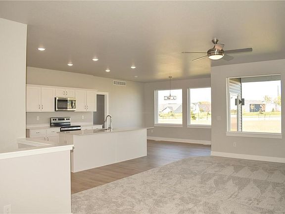 Destiny Homes presents their Canyon floor plan with a 3 car garage. This zero entry ranch plan features 2 bedrooms, 2 bathrooms and approximately 2200 square feet of finished space. The kitchen features a large walk-in pantry, 10 ft island and quartz countertops. The adjacent dining space opens to the covered patio. The great room has plenty of natural light from the large picture windows. The primary suite features a double vanity and walk-in closet. There is a long list of standard features including; passive radon system, 2x6 construction, SMART Home Automation and 2 year builder warranty. Waterford Ridge is located in the Waukee School district and is in the Northwest HS feeder boundaries. Withing walking distance to two city parks, a disc golf course, a pond, miles of walking/bike trails, and the future Waterford Elementary School opening in Fall 2024. Ask about $2,000 in closing costs provided by the preferred lender. Due to city code, the garage is the size of a three car garage, but only has a two car garage door.
