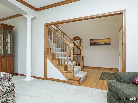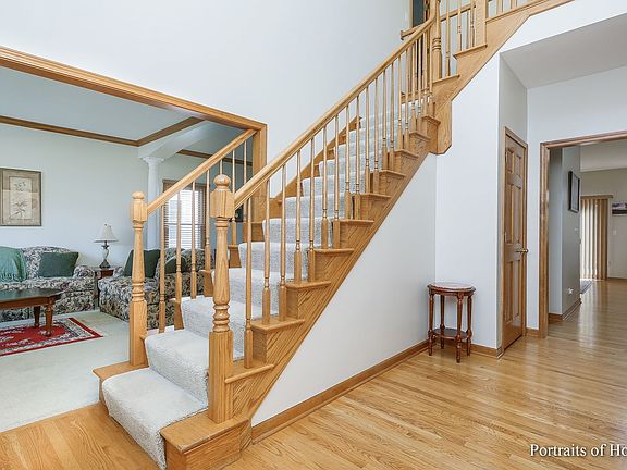 Beautiful two-story home in Plainfield. 4 bedrooms & 2 and a half bathrooms. Two-story foyer leads to a spacious family room with floor to ceiling stone gas fireplace. Large eat-in kitchen with tons of cabinet space and island for additional prep space has updated stainless steel appliances (2017),microwave (2021), and hardwood floors. Living room and dining room with crown molding. First floor office, laundry/mudroom with sink, closet, storage and powder room finish out the first floor. Upstairs has 4 bedrooms including the master suite with tray ceiling, huge walk-in closet, and expansive master bathroom. Bedrooms 3 & 4 with walk-in closets. Full bathroom has a double sink and water closet. Entertainer's dream basement has a rec area with theater seating and screen, inspired 50's diner with booth seating, bar, & industrial ice cream freezer & sink. Tons of additional storage. Backyard has a large wood deck (painted 2021) & new mulch (2022). The home features many upgrades with the roof, siding/gutters, windows, appliances, sump pump with backup battery, & hot water heater. This home is in Wallin Woods and located minutes to downtown Plainfield, schools, parks, YMCA, expressway,PACE bus, & train. Amazing Plainfield 202 schools- Plainfield North High School.