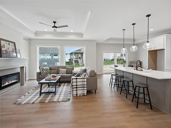 Welcome to the new and improved Happe Homes Callista plan featuring over 2500 SF of finished space located in the Barrett Estates community in Urbandale! This thoughtfully designed home is loaded with features that include a gourmet kitchen featuring a 9' center island, range with hood vent, quartz counters, tile backsplash, oversized pantry and hard surface flooring that flows through your main living areas. The family room includes a box ceiling, beautiful fireplace and oversized windows. The dinette space leads out to the 15'x14' covered patio for outdoor living space. The primary suite has a box ceiling and leads into the bath that includes a double vanity, tile shower, enclosed toilet area and nice sized closed with convenient access to the main level laundry room. The finished lower level includes an abundance of space with a large family room with a walk-up wet bar, 4th bedroom and additional bath. Happe Homes includes more with 2x6 construction, executive trim package, free moving incentive, and MORE! All information obtained from seller and public records.