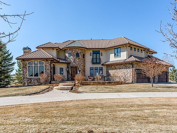 Beautiful custom home on 2.7 Acre Horse property with mountain views backing to open space/trails and equestrian trails. Fenced Paddock and 2 story barn that includes a hay loft with Winch. This 6 Bedroom, 7 Bathroom home has custom features throughout welcoming your family and guests with more than enough space for entertaining inside and out. Juliet Balconies and a Rotunda windowed sitting area are just a few of many extras. A Gourmet kitchen inside and outdoor gas grill kitchen with gas fueled fireplace can be accessed through several exterior doors including the walk out basement. This home is a must see for it's beauty, soaring ceilings, spacious floor plan and elegance. Fully integrated smart home system, professional landscaping and flagstone patio with walkways. Nicely maintained with a clear pride of ownership.