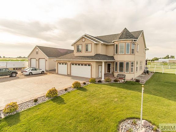 Acreage property with Huge Shop and sprinklered pasture. Shop is 40x60 with 14' ceilings and finished loft with dry bar and balcony offering views. 2 story home features 5 beds, 3 baths and attached garage has room for 5 car as one bay is dbl deep. Enormous master bedroom suite with gas fireplace and large tiled walk in shower. Large kitchen with heated floor, cherry cabinets, granite tile,dbl ovens, gas range, and dishwasher included. Kitchen is open to family room/great room with that flooring being new and heated floor under entry tiles in the last year. Room also features a gas fireplace and built in entertainment center. Open tiled deck in backyard with pergola above and fire pit in large fenced yard. Home also features office/formal dining room, and heated floor under entry tiles . Basement is finished with huge living room/game room, large bedroom and sauna (one of owners favorite features) and tons of storage.This home is a rare find! Act fast!