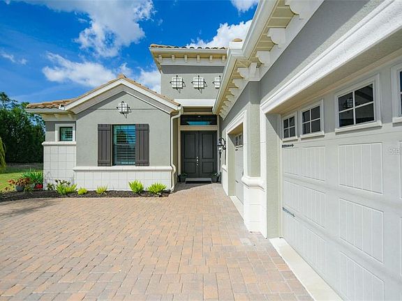 A place of modern refinement, this Neal-built home positions itself within Country Club East, a prize for anyone looking to enjoy the Lakewood Ranch maintenance-free lifestyle. Meticulously designed & the finest finishes are evident throughout. An open floor plan brimming with modern flair welcomes you with porcelain tile floors, soaring ceilings, crown molding, exquisite light fixtures and raised panel 8-foot doors. Serene lake views and large side greenspace complement the outstanding indoor-outdoor experience, providing opportunities for luxe living and entertaining. The great room is masterfully designed and spacious, showcasing exceptional features such as transom windows, 8-foot sliders to the lanai and hurricane impact glass windows, all of which combine to create an ethereal living space inundated with natural light. An impressive gourmet kitchen accommodates all of life's events with the highest-level quartz countertops and fixtures, large pantry, stainless steel appliances, expansive island with bar seating and abundant wood cabinetry. Host and lounge in the comfort of a premier outdoor playscape with a custom pool showcasing a serene waterfall feature, access to a half-bath and covered areas to dine alfresco. The lanai is also plumbed with natural gas to complete the experience. The main-floor master inspires the highest of self-care with spa-like bath, large frameless glass-enclosed walk-in shower and dual vanity. Two additional guest bedrooms, one of which is en-suite, further enhance the living experience to unparallel comfort. A conveniently located study/office is great flexible living. The roomy laundry room, sink, tall cabinetry and storage and 3-car garage add to the amazing list of features. Lakewood Ranch Country Club East offers a wealth of amenities and membership options to include championship golf, tennis, dining, events, resort pools, and a state-of-the-art fitness center when staying close to home. Additionally, this home is within proximity of world-class beaches, shopping, Sarasota Polo Club and fine dining just beyond the gates. Seller requests lease-back or long closing until new build home is expected to be completed the end of July, 2021.
