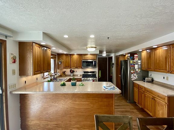 Check out this spacious split level home in a great neighborhood in NW Minot.  Pulling up, you will immediately notice the large size of the home and the lot.  On the main level, there is a large living room, and open dining/kitchen that opens to the deck in the back yard.  The kitchen shows beautifully with stainless steel appliances, a bar-height counter, and tons of cabinet space.  From the kitchen, you can access the 1/2 bath with laundry and utility sink and the oversized 2 stall garage.  There is new Vinyl Plank flooring throughout the main and upper levels.   Heading upstairs, there are 2 decent sized bedrooms, lots of closet space, and a large full bathroom with dual sinks and tile work that makes you feel like you're at the spa.  The primary bedroom is also on the upper level, and it has another full bathroom.  On the lower level, there is a large family room with a wood stove fireplace, a 3/4 bath, and another bedroom.  Natural light and space are not a problem in this home!  Off the deck in the back is an apple tree, big shed (with electricity), and tons of room for gardens, animals, and lots of different hobbies!  Don't miss this great home.  Contact your favorite agent today!
