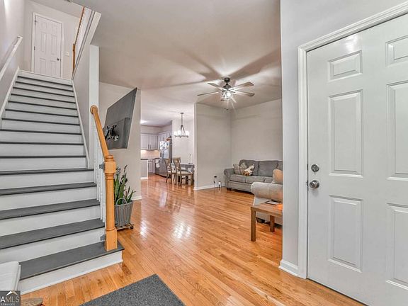 Welcome home to this wonderfully maintained 2-bedroom, 2.5-bath townhome located in a quiet, gated community just minutes from I-75 offering easy access to both Chattanooga and downtown Dalton. Step inside to discover gorgeous hardwood floors throughout the main level, which features a spacious living area, a convenient half bath, and a bright, open kitchen equipped with stainless steel appliances, an island, and tons of natural light. Enjoy your morning coffee or evening unwind on the private balcony just off the kitchen. Upstairs, you'll find two generously sized bedrooms, each with its own private bathroom and plenty of closet space. The primary suite features his-and-hers closets, a double vanity, and a private sunroom perfect for a cozy sitting area or a light-filled home office. Additional features include a single-car garage that can also function as a workshop, plus access to community amenities like a clubhouse and pool. This home is move-in ready and radiates pride of ownership. New HVAC system installed in April 2025. You'll fall in love the moment you step inside!