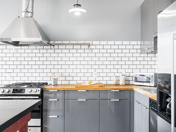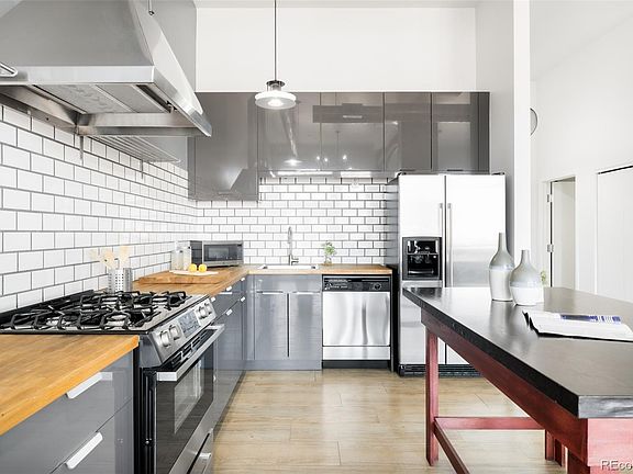 Urban, loft-style living with two deeded parking spaces and low HOA fees is unveiled in this low-maintenance, move-in ready, industrial-inspired LoHi escape. A freshly painted interior features soaring ceilings, exposed ductwork and expansive windows that frame panoramic views of the downtown Denver skyline. A large, designer L-shaped kitchen provides plenty of space for friends and prep with a big, movable island, white subway tile backsplash, butcher-block countertops, tons of cabinet storage and a gas range for serious chefs. Retreat outdoors to lounge or dine al fresco on a spacious, elevated 224 square-foot covered outdoor patio overlooking the city. The bedroom sanctuary features a walk-in closet with a ladder for additional lofted storage, perfect for suitcases and extra boxes. A walk-in laundry with storage room is an added amenity. Enjoy the security of a locked, gated complex with both parking garage and surface parking, including secure visitor parking, too. Delight in proximity to all the energy of neighborhood hotspots – Avanti, Linger, El Five, Forrest Room 5, Little Man Ice Cream. Highland Bridge is just a few steps away for easy connection to Downtown proper, too – hop on light rail, jog around Commons Park, meet for drinks at the Terminal Bar / Union Station, enjoy a day at the Ballpark or Empower Field, or pop on a bike path to cruise any of trails at Confluence Park. Excellent long-term rental history presents a superb opportunity for investors, as well. Property video highlights the urban location and neighborhood vibe... https://youtu.be/YguLzkUYS7A?si=xyEChdv07_Aucje8