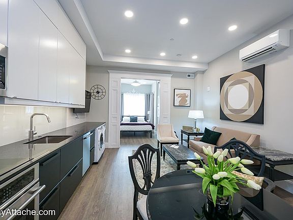 Award-winning, LEED Certified GOLD in 2023*, fully furnished 1 bedroom, 1 bathroom condo, on the top floor of a historic Dupont solar-powered 5-unit building. Zero VOC paint, flooring and cabinets. The building employed sound transfer decreasing techniques and this one-way block of Corcoran is known for how quiet it is. Located conveniently between both Dupont and Logan Circles. This apartment features high ceilings, bay windows in the bedroom and stained glass accent windows. The modern kitchen includes stainless steel energy-star appliances, an induction stove top and a dishwasher. The bedroom has a queen-size bed. This property includes mini-split air conditioning and in-unit washer/dryer. The bathroom features a washlet toilet and a glass paneled shower. The Dupont Circle Metro Station (red line) is an 11-minute walk and the U Street Metro Station (green and yellow lines) is a 12-minute walk. Enjoy living around eclectic restaurants, shops, entertainment and several grocery stores (Safeway, Whole Foods and Trader Joe's). If applicable, there is a one-time pet fee of $450. There is a 2.5% service fee and a departure cleaning fee. If applicable, there is a one-time pet fee of $450. There is a 2.5% service fee and a departure cleaning fee.