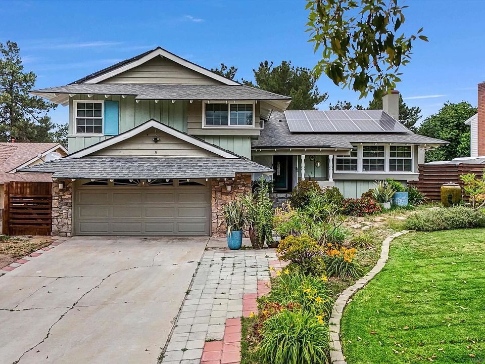 Welcome to this beautifully remodeled 4-bedroom, 3-bathroom gem in the heart of Corona—where comfort, style, and sustainability meet. This stunning home boasts 30 fully paid-off solar panels, helping you keep your electricity bills impressively low all year round. No HOA Inside, the thoughtful renovations have been carefully maintained over time, showcasing timeless elegance that photos simply can’t capture. The chef’s kitchen is a true showstopper, featuring sleek granite countertops, a full backsplash, a 4-door refrigerator, dishwasher, and a wine cooler—perfect for entertaining. Enjoy meals and great conversation in the spacious dining area or at the separate bar seating. Relax in the inviting living room complete with a cozy fireplace, or retreat to one of the generously sized bedrooms. The primary suite includes a luxurious en-suite bathroom with dual vanities for added convenience. Step outside to your backyard oasis—a covered patio ideal for lounging and taking in peaceful views of the nearby golf course. Beat the heat in the sparkling blue pool, equipped with a solar-powered heater to extend your swim season without increasing your energy bill. For added convenience, a full bathroom on the first floor provides easy access for poolside guests. This home truly has it all—modern upgrades, eco-friendly features, and the perfect blend of indoor comfort and outdoor enjoyment.