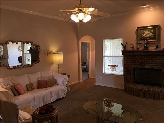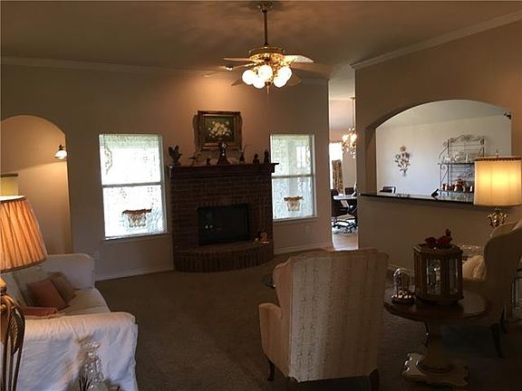 3-2-2 brick home on a quiet street;Ceramic tile floors throughout, except den and bedrooms which have carpet; Den with WBFP; Kitchen offers Granite countertops, island, walk-in pantry, refrigerator, built-in smooth surface range, microwave, vent-a-hood, dishwasher and custom cabinetry; Decorative lighting, ceiling fans, crown molding & window coverings; Master BR with ensuite and walk-in closet; Split bedrooms; Covered patio with WBFP; Wood fence