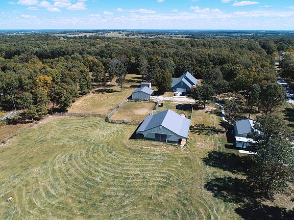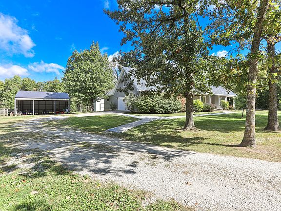 20 acres of unrestricted land, this property offers much enjoyment for the outdoor lover. Just 15 miles from Pomme De Terre Lake and 10 miles from Bolivar, this location offers ease of access to city convenience (shopping, restaurants, hospital), yet great proximity to lakes, wildlife, and country living at its finest. This home has a new roof, new gutters & soffit, & new aluminum siding as of fall 2019. All solid surface floors and a surplus of storage options are found throughout the home. Kitchen has granite countertops, built-in pantry, slide out shelving, plus a lazy Susan. Dining room hutch is built in for even more storage. Master suite has a large closet, jetted tub, walk in shower, and double sinks. Upstairs is a spacious suite with a full bath & large walk-in closet. The east side of the home hosts the other two bedrooms & full bathroom. Laundry is currently in the garage, but there are hookups for a compact unit in the laundry room/butler's pantry. Just off the kitchen/dining nook is access to the back concrete patio, with plenty of space for grilling, lounging, entertaining, you name it. One of the highlights of this property is the six stall stable which displays craftsman quality work in every aspect, from the yellow pine walls, to the upstairs loft. It also contains an office along with tack room/feed closet, both with concrete floors. One stall has concrete floors as well, currently used as a dog kennel; one stall is set up as a chicken coop. The stable is enclosed in approx 2.5 acres of fenced pasture along with a riding arena. The entire 20 acre property is fenced on 3 sides with 5 strand barbed wire. A 30'x30' 3 bay poll barn with gravel floor sits adjacent to the home. Each bay has approx 12' tall clearance. A smaller enclosed storage shed is nearby as well, with an upstairs loft for additional storage. Another amazing feature is the 26' x 36' garage/workshop with it's own second septic system to service it. ** Click to read more **