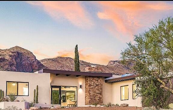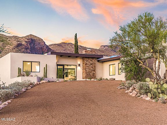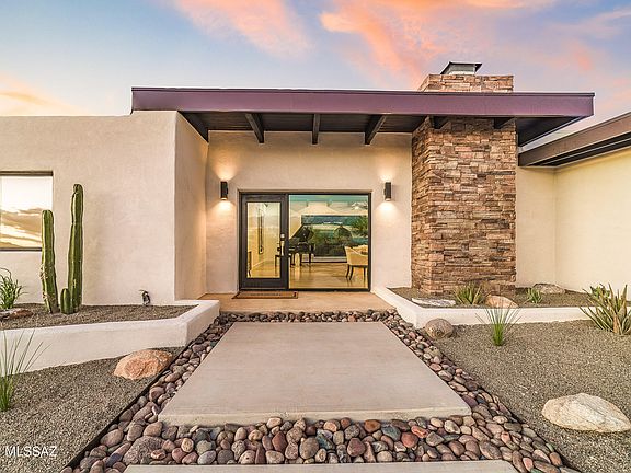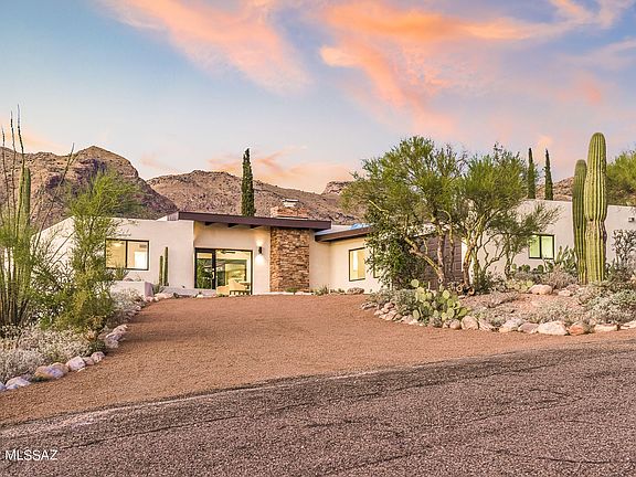 This completely remodeled property is perched perfectly in the Catalina Foothills delivering highly sought after mtn & city light views. The magic begins as you enter and see the gorgeous wood ceilings and mtn views thru the retractable wall of windows which allows for a seamless flow to outdoor living spaces. Large dining area w/ beautiful marble tiled wood burning fp. Just off to the right is the gourmet kit. complete w/ 48 in' gas range, pot filler, large marble island, marble backsplash, & wet bar. Primary Bedroom wing is its own sanctuary with mtn views & private access to patio Luxurious Bath boasts a spacious walk-in shower & soaking tub. 3 addt'l lrg bdrms each w/ its own views of the mtn. or city lights. Seller is licensed to sell real estate in AZ. LA has interest in property. New colored concrete driveway with salt finish. 5 year roof warranty, Hvac warranty- 5 year labor & parts and 10 year on parts, 1 year full home warranty and 1 year termite warranty.