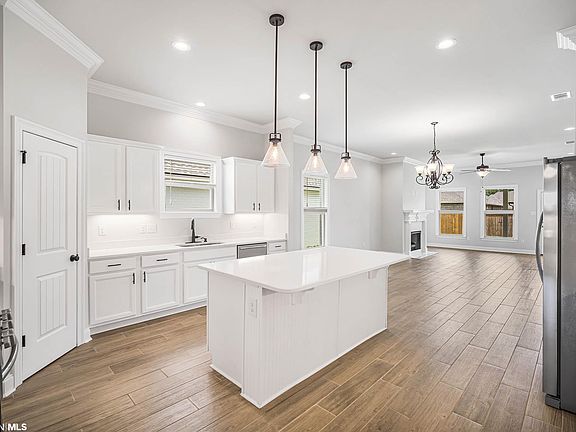 Gorgeous all brick home located 10 miles from the beach and 10 minutes from South Baldwin Regional Medical Center. The FUSCHIA II A in River Oaks community offers a 4 bedroom, 3 full bathroom open design floor plan. It is the largest home offered in the River Oaks Community. This home includes upgraded quartz counters/fireplace surround, a refrigerator, brand new washer & dryer, cabinet package, wood-look ceramic tile flooring, blinds for windows, 9-10 ft ceilings with crown molding, frameless shower door with custom tile in the master bathroom, under-cabinet lighting and more! Special Features: walk-in pantry & island in kitchen, full bathroom in 4th bedroom/guest suite, large walk-in closet, double vanity, garden tub, and separate shower in the master suite, recessed lighting, under-mount sinks, vent-less gas fireplace, smoke and carbon monoxide detectors, covered patio, seasonal landscape package, architectural 30-year shingles, Gold Fortified Certified Home and more! Energy Efficient Features: ceiling fans, tank-less gas water heater, stainless steel appliance package with gas range, vinyl low E MI tilt-in windows and more! All information deemed reliable but not guaranteed. Buyer to verify all information deemed pertinent.