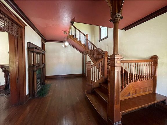 Step back in time with this historic Victorian home built in 1920. Step inside the grand entry featuring a magnificent stair case, courting bench, and original fireplace. The main floor offers hardwood floors, transoms over doors, wide baseboard molding, three magnificent original fireplaces along with a large front parlor/living room which adjoins the elegant formal dining room featuring an original built-in china cabinet, fireplace and pocket doors. Off the dining room is an eat-in kitchen featuring wood floors, stainless steel appliances, gas stove, wood cabinets, and half bath. A second stair case leading to the bedrooms on the second floor is located to the back of the home. The second story offers an extra wide hall way leading to three bedrooms, sleeping porch, library, full bathroom with clawfoot tub, shower, and antique vanity. The laundry room is conveniently located on the bedroom level as well. The third floor is partially finished featuring a non-conforming bedroom or family room, sitting area and fourth bedroom. Enjoy your morning cup of coffee while breathing in the fresh air from the magnificent wrap around front and side porches. Located on a large corner lot this home offers room for a small garden or outdoor living space. The detached garage features a loft for additional storage. Surrounded by blooming Red Bud and Dog Wood trees this property is a delight in the spring and summer.