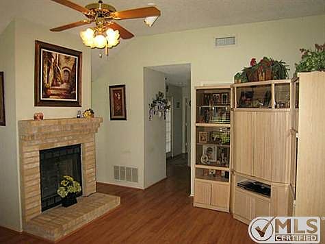 Nice zero lot line one story home great for first time homeowner or someone looking to downsize. This home features,cozy living room with brick fireplace,formal dining room,great open kitchen with breakfast bar,ceramic tile flooring,spacious master suite with walk in closet,master bath with double vanities,large 2nd bedroom,updates include,designer paint and carpet,this home is complete with a wood fenced backyard,covered patio and 2 car garage.
