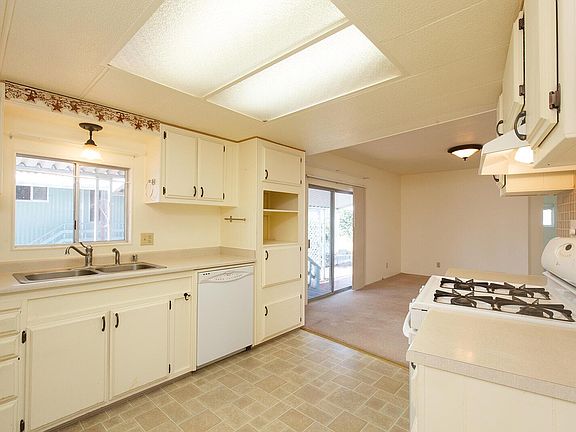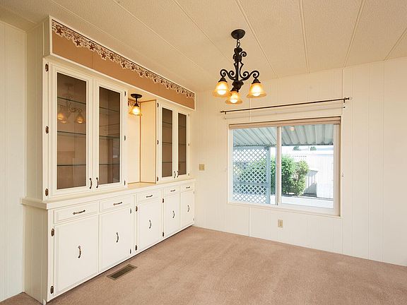 Move in ready! This home is open & bright. Great floor plan. 2 bedrooms, 2 bathrooms. Located on a corner lot. Royal Crest Mobile Home Park. 55 and older. Park approval is required.