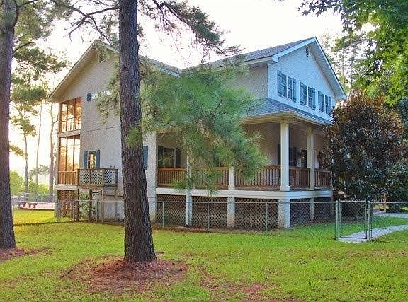 Looking for a Coastal home with a dock or a dock with a home this could be it. Open floor plan with stone fireplace. 3 bedrooms, 4 baths. Screened porches on both floors give great views of the waterway, 40 foot long dock with screened dock house. Large deck with fire pit add greatly to the outdoor living area of this home. Large 2 car garage with kennel area or shop / storage space with additional covered parking area at rear of building. Fenced yard is great for pets or keeping kids from wandering off. Over 1.5 acres gives plenty of elbow room. One Year Home Warranty. Possible Owner Financing. Call soon for a private showing.