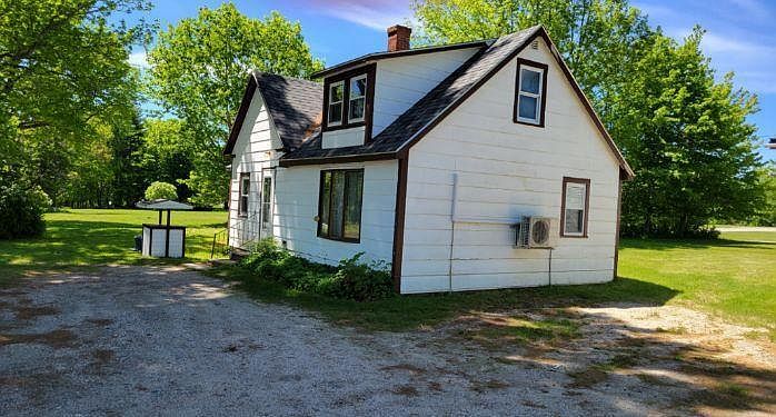 Maine country home for sale in Burlington, Maine. The first floor features a kitchen, dining room, living room, utility room, bedroom, and a full bathroom. The second floor has one bedroom. The home has 3 heating sources, private well & septic, and power. It is located on a year-round, maintained road. This home sits on 0.61+/- surveyed acres and has a two-car detached garage. Located close to outdoor recreation including ATV & snowmobile trails and Eskutassis Pond.