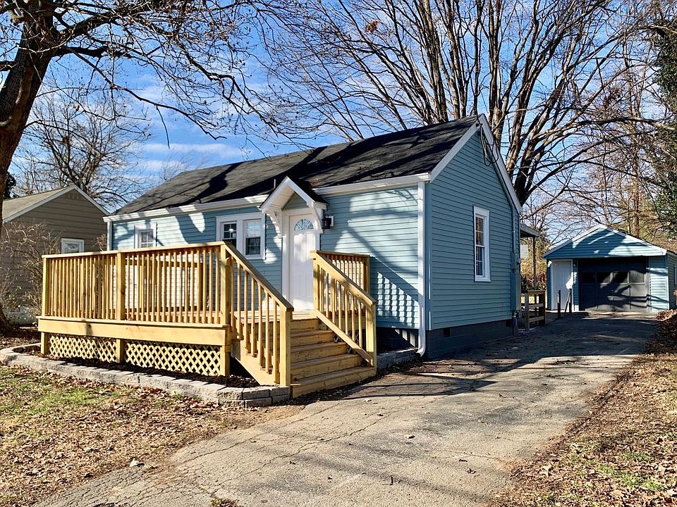 You are going to love this wonderfully renovated move in ready ranch in the Camp Taylor neighborhood. So much 'new.' The new 10' X 14' front deck leads to the front door of this one floor living home. Approximately 750 Sq. Ft. of living space with newly created open & vaulted floor plan including living, dining and beautiful new kitchen. Bamboo flooring flows throughout this area and continues into the 2 bedrooms. The kitchen boasts new white Cardell cabinetry, grey and black granite countertops, polished porcelain backsplash, new stainless Frigidaire appliance package (wrapping still on!) with side by side refrigerator, electric smooth surface range, microwave, dishwasher and a pantry. The full bath with polished porcelain floors has a tub/shower combination with subway tile surround and accent band of glass mosaic tile, new vanity, commode and medicine chest. The largest of the two bedrooms has a huge walk-in closet. The laundry room has plenty of room for full size side by side washer/dryer with extra shelving and hanging space, and also houses the new tankless electric water heater and convenient-access main water shut off valve. Out the back door to the rear partially fenced yard is a covered patio for outdoor entertaining along with a one-car garage with electric and garage door opener. Replacement tilt in windows, new ceiling fans and lighting fixtures throughout, new HVAC, updated plumbing (with Pex water lines), new electric service, new blown in insulation, new vinyl siding (house and garage) & gutters make this home worry & maintenance free for years to come. The roof is believed to be around a year old.