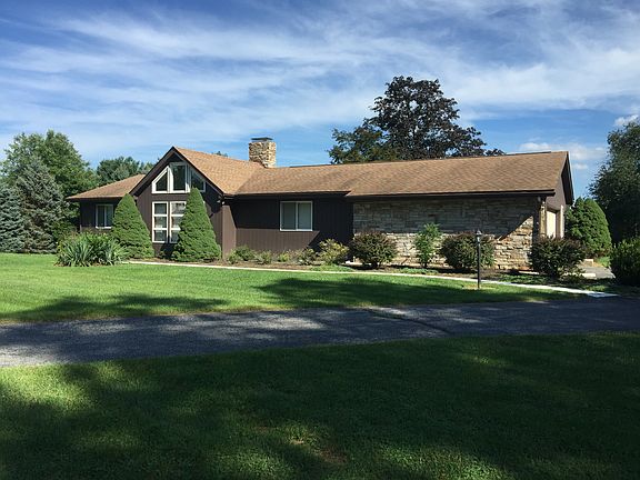 CONTEMPORARY RANCHER WITH OPEN FLOOR CONCEPT! CATHEDRAL CEILING WITH STONE FP IS THE HALLMARK OF THIS SPACIOUS UPDATED RANCHER. NEWER KITCHEN CABINETS, GRANITE WITH BREAKFAST NOOK AND LAUNDRY ROOM. ADJOINING FAMILY ROOM, DR, LR AND SCREENED PORCH. NEWER ROOF, RELINED CHIMNEYS, OIL BURNER AND HEAT PUMP. REC ROOM WITH WET BAR, DEN AND STORAGE/WORKSHOP COMPLETE THE EXTRA LIVING SPACE IN LL.