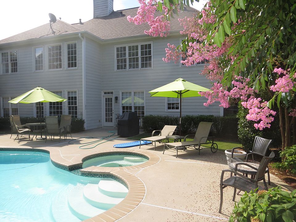 **BUYER FINANCING FELL THROUGH!** Living made easy! Meticulous estate w/ hardwoods throughout main level, designer light fixtures & sky-high ceilings. Natural light consumes the 2 story great room complete w/ custom marble fireplace. Beautiful chef's kitchen w/ SS appl, dbl oven, granite counters & breakfast area that overlooks the private backyard. All bedrooms upstairs, including the spacious Master Suite w/ sitting room, renovated spa-like bath & designer tub. Heated pool w/ spa! Landscaping & stone fire pit makes for the perfect summer entertainment area!