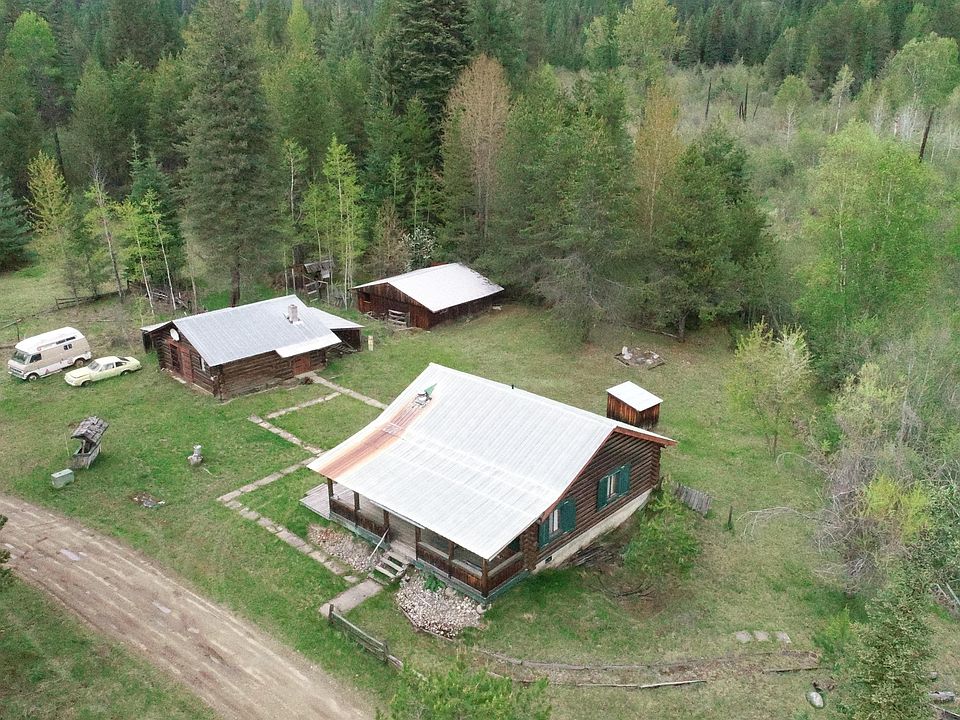 1/1 900sf log cabin on 9.9 acres with shop and outbuildings, barn on side of shed. Usable ground. mostly wooded with year around creek. Cabin has wood and electric heat & good well. lots of wildlife. Great getaway!
