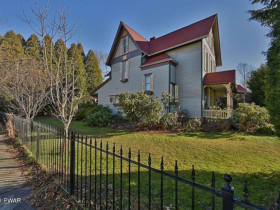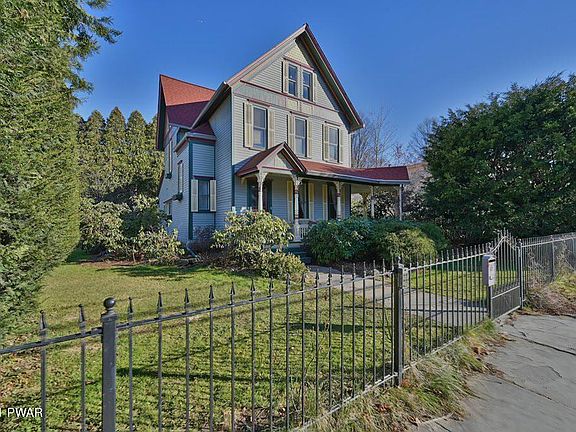 STATELY VICTORIAN - HONESDALE - DETACHED GARAGE/CORNER LOT - Well folks, you've waited for it! Here it is... Check out this classic ''North Main Street' beauty nestled around the historic district of Honesdale! Amazing new Kitchen with marble countertops, and limited edition, handpainted Kohler ''Artists Edition'' sinks. Inviting entry foyer, fornal Dining room, cozy Living room with gas fireplace and the floors are origianl hardwood with mahogany inlays. Bright and cheery rooms with plenty of natural sunlight! Look at the master bedroom! 3 additional bedrooms and full bath upstairs and half bath powder room on the main level! Very traditional wraparound porch and a wraparound yard of fruit trees, and shrubbery! All this, and a detached garage as well as a fence wrapping the property!