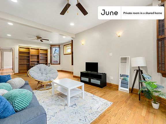 PLEASE NOTE: This is a private room in a shared apartment. You will have your own bedroom and shared common areas (kitchen, bathroom, etc.) with other residents. Queen bedroom in a 2 bedroom / 2 bathroom apartment! This Queen room in Logan Square is available on a 12 month lease or a flexible short term (31 to 364 days) lease. You pick your custom start and end date. Monthly rent rate is determined by furnishing preference, move-in date and move-out date. Speak to a June representative for recommendations on the best stay duration for the lowest rate. Amenities of this home: Dishwasher, Furnished Common Areas, Wi-Fi - Paid separately (High-Speed), Guarantors Allowed, Dining area, Couple-Friendly, Laundry in building (free), Enclosed backyard, Hardwood Flooring, Oven, Refrigerator, Air Conditioning | HVAC, also, this unit is conveniently located, several local parks, restaurants and bars are just minutes away. About June Homes: Welcome to the easiest rental experience of your life. Rent furnished or unfurnished apartments on a 12 month lease or a flexible short term (31 to 364 days). As a resident, you'll have access to 24/7 support and monthly cleanings of the home's shared spaces. Sign up now to apply online for your next home with June. Brokers welcome! Contact us for more details. Kindly note that the minimum stay duration would be 32 days. Use this listing ID when speaking to June team: #1823 A
