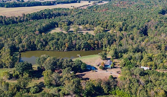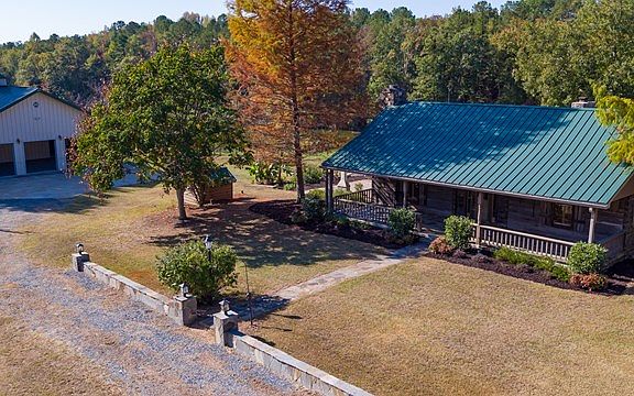 Peaceful homeplace beautifully restored & updated with all the modern conveniences! This historical home sits on 31-1/2 acres, features the original cabin on the front and a huge addition on the rear. Addition includes kitchen, dining room, huge greatroom, master suite with study, walk in closet & master bath, spacious laundry room, party-sized deck and patio overlooking a private pond. Wide knotted pine floors, walls of cabinets, 3 fireplaces, and tall windows everywhere! Covered front porch!