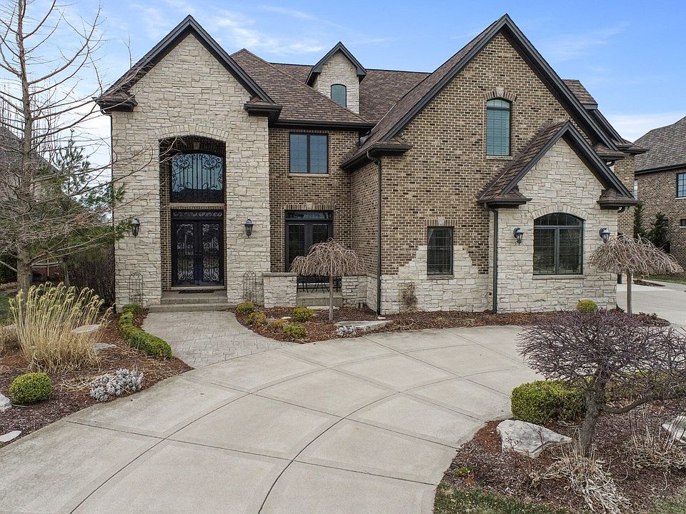 Nestled in an exclusive gated community in Munster, Indiana, this luxury custom home is a masterpiece of design and elegance. Spanning multiple levels, it features five spacious bedrooms and seven luxurious bathrooms, ensuring comfort and privacy for all. Upon entering, you are greeted by a grand foyer that sets the tone for the opulence that lies within. The chef's kitchen boasts top-of-the-line appliances and opens to a sophisticated dining area, elegantly separated by a stunning curved stone wall. The upstairs primary bedroom suite is a private retreat, complete with a cozy fireplace and a balcony that offers serene views. Three additional en suite bedrooms cater to family and guests, while an elevator provides convenient access to all three levels. The incredible walk-out finished basement is an entertainer's dream, featuring a wet bar, gym, and a sport court. Outdoors, the backyard oasis overlooks a tranquil pond, complete with a huge patio and a sparkling swimming pool, perfect for relaxation and entertaining. This home exemplifies luxury living at its finest.