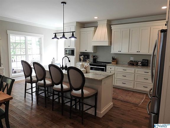 Amazing location! Just a short distance from Lake Guntersville! This home offers many amenities including: granite counter tops, wood/tiled floors, gas log fireplace, tiled shower & soaking tub, craftsman trim package, shaker cabinetry, large walk-in closet, open floor plan, ceiling fans, covered front porch, cement board siding, metal roof, garage, minimal lawn upkeep & much much more! Convenient to downtown and schools.