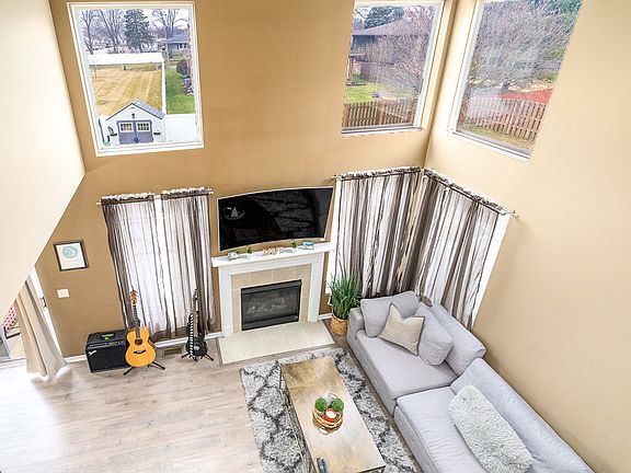 This beautiful, bright & sunny duplex boasts an open floor plan that features: A dramatic 2 story living room with cozy fireplace; Kitchen with 42" oak cabinets; Dining area with door to the privacy fenced yard with concrete patio, built-in grill & 18' round swimming pool; Vaulted master bedroom with walk-in closet & direct access to bath; Bedroom #2 with walk-in closet; Convenient loft that's adorned by oak railings; The full, finished basement is an entertainer's dream with a family room that offers a custom bar with beverage fridge & wine cooler, 2nd fireplace, pool table, TV & plenty of storage; 2 car attached garage with storage racks & cabinets.