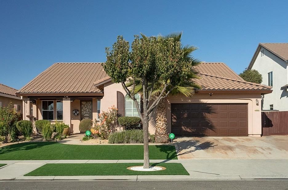 Beautiful former model home just 14 years young. This home is filled with upgrades such as crown molding, upgraded floor coverings and even stereo surround sound. With 3 bedrooms and a den that is perfect for that so-needed home office, there is a formal living and dining room open to the spacious kitchen and family room with a bonus area. There is room for gaming, home education, hobbies, whatever your needs are right now. The master bedroom has an en-suite bathroom with a separate tub and shower, double sinks and an over-sized closet. The guest bath also has double sinks. The indoor laundry room has plenty of storage and a convenient sink. The garage is extra deep allowing indoor parking for longer vehicles. The side yard offers potential RV parking. You can spend more time enjoying life instead of doing yard work with the turf landscaping in the front yard and low maintenance plants in the front and back yards. Relax in the spa on your beautiful covered patio and entertain with friends year round.