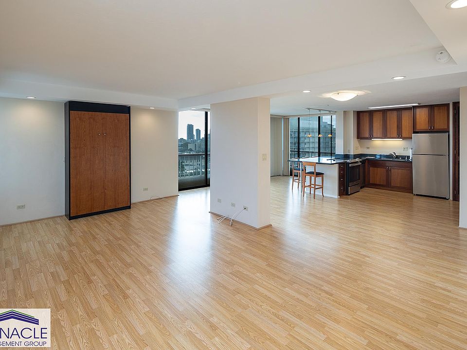 Spacious 2 bdr/2 bth condo with gorgeous view of the Honolulu skyline and mountains. Over 1,200 sq ft featuring a remodeled open kitchen extending out to a wide-open living room and dining area. New AC in primary bedroom and washer/dryer inside unit. Secured bldg with only 2 units per floor. Includes 1 pkg stall. Unbeatable, walkable location near Punahou, Maryknoll, Kapiolani hospital, and minutes away from Waikiki and downtown. No pets. 1 year lease. Water & sewer included. No pets. No smoking. Section 8 vouchers not accepted.