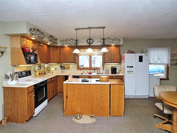 Scenic .87 acre within the city limits.... 3 Bedroom, 1.5 bath home offers living rm, family rm, dining rm, open kitchen, a partially finished basement with a large rec rm, covered rear deck, lg 2 car detached garage & a doll house. Updates include a new steel roof (4 yrs old) and most windows have been replaced. The circular drive allows for easy access. City utilities are available as water is located on the west side of the street.