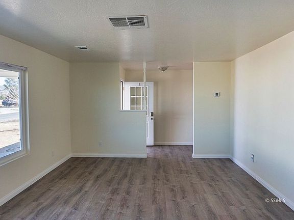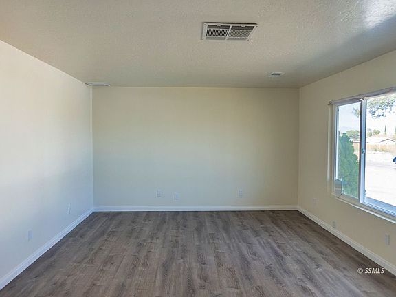 This adorable Ridgecrest Heights home is situated on a double lot. The front landscape includes trees and shrubs. The entry opens up to the large living room which features LVP flooring and a large window overlooking the front yard. The kitchen and dining room are open to each other. The kitchen features solid surface countertops, white cabinetry, beautiful backsplash and a breakfast bar. Spacious dining room with two lighted ceiling fans. Off of the dining room is a bonus room with tile flooring and a wood burning stove. The hall bathroom has an updated vanity and fixtures, LVP flooring and a custom tiled shower with a tub. All of the bedrooms have new carpet flooring and lighted ceiling fans. The main suite's bathroom features an updated vanity and fixtures, tile flooring, and custom tiled walk in shower with glass bi-pass doors. Indoor laundry room with built-in storage. Large fenced backyard with trees and bushes. Newer windows and doors. Newer dual cooling (A/C/Heater and Evaporative)! Storage shed. Single car attached garage and a single car detached garage. **Owned solar system with 37 panels. Come take a look!