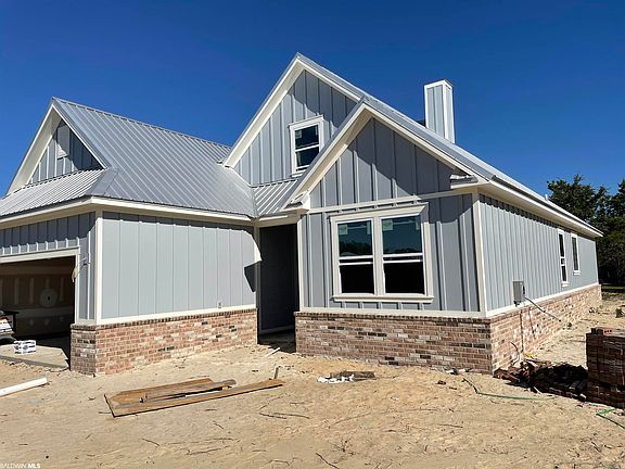 Gorgeous Custom-Built Home!! All the upgrades that one may desire. This Gold Fortified home offers a grand entry foyer with 19-foot ceilings and beautiful cypress beams. Hardwood flooring in the great room with tile in the kitchen, dining and both baths. The living room is accented with a cozy wood burning fireplace while the kitchen boasts shaker style cabinets and stainless-steel appliances, gas range, quartz countertops and a large walk in pantry. Open Concept Living, Kitchen and Dining. Crown Molding is seen throughout the living areas, master bedroom and both baths. The split floor plan has the master suite to the rear of the home. A master en-suite that you're certain to love! Zero entry tile shower, free standing tub, double vanity and a huge walk-in closet. Both guest bedrooms are large in size with nice walk-in closets. View the documents for more Interior and Exterior Features as well as Energy Efficient Features. The Colony at Fort Morgan is located on the bike/hike path that can take you through the Gulf State Park or to the Beach. This location is prime! Call your agent today to schedule your private showing.. The renderings shown are not exact. Some interior and exterior features have been modified. Photo's will be updated as home progresses.