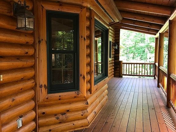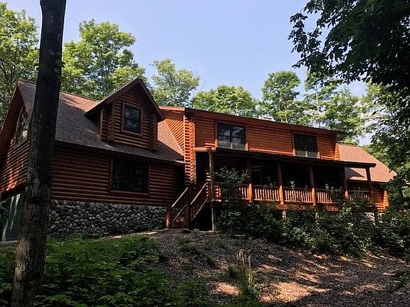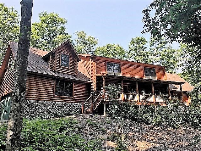 Custom built Wisconsin log home nestled on the 4th hole of Chestnut Valley Golf course. Move right in, as most of the furnishings are included. Curl up next to the soaring stone wood burning fireplace. Embrace the great outdoors as you gaze through the floor to ceiling windows. Step right out of your master en suite onto the covered wrap around porch and enjoy your morning coffee. Open floor plan great for entertaining. This house sleeps a crew but is not to large for a couple to enjoy main floor living. Finished walk out basement features a professionally designed surround sound and audio\video closet. A large workout area, laundry room and a new custom designed tiled bathroom. The basement is plumbed for a wet bar. The finished insulated garage has been spackled and painted and features a new garage heater and hot and cold plumbing..