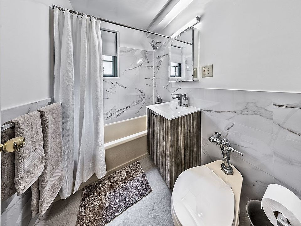 The one-bedroom Prestige Apartment has ample space, lots of sun, traditional styling and best of all the most up-to-date kitchen finishes and modern appliances as well as completely renovated bathrooms. Select from one of the two kitchen choices in either Arctic Ribbon or warm cherry. The cool tones of the Arctic Ribbon finish with sleek off-white and grey cabinets are complemented by slate grey granite countertops. The second kitchen finish features Warm Cherry cabinets with matching rose-toned granite countertops for a classically elegant look. And of course, residents have access to all the usual onsite amenities: Macys, supermarkets, blink Fitness, express bus service, the Parkchester subway stop (30 minutes to midtown), parks and 24-hour roving security.