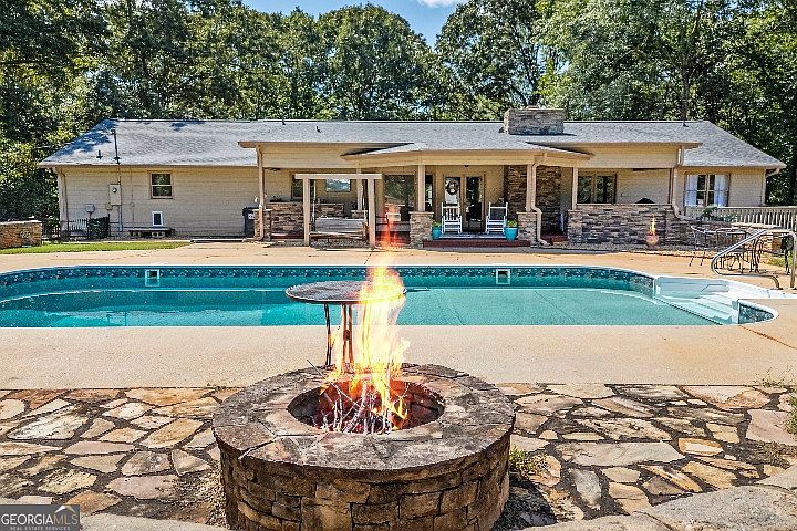 Come and explore this charming 8.49-acre farmette in Covington! This hobby farm is fully fenced and features a three-stall barn equipped with water, electricity, and a storage room. Enhancing the barn's appeal are a run-in shed and a riding arena. Conyers International Horse Park and Ashland Farm are only a 30-minute drive away. The outdoor patio beautifully combines luxury and relaxation, highlighted by an inviting in-ground pool, perfect for warm days. On cooler nights, the fire pit provides warmth and a great spot for roasting marshmallows. Inside the home, the kitchen and bathrooms have been updated for modern living. The primary bedroom serves as a peaceful retreat, complete with an ensuite bathroom for both privacy and convenience. A spacious walk-in closet offers ample storage for all your clothing needs. Two additional well-sized bedrooms provide plenty of room for children, guests, a craft room, or a home office. On the lower ground floor of this raised ranch, you'll find an updated mother-in-law suite featuring a complete kitchen, bathroom, bedroom, and living area. This versatile space is ideal for a media room, game room, or additional living area, making it perfect for hosting movie nights, creating a play space for kids, or accommodating guests. The suite has its own separate entrance and driveway, providing additional privacy. It could also serve as an income-generating unit for a long-term renter or Airbnb. Conveniently located, this home provides easy access to shopping and dining. Target, Publix, Kroger, restaurants, and various retail stores are just 15 minutes away, while Tractor Supply and local feed stores are only 8 minutes away. This country oasis is less than an hour's drive from Atlanta. With all these modern conveniences, come make this home yours!
