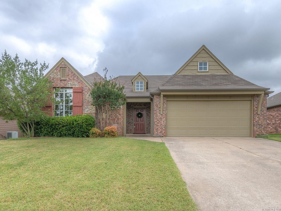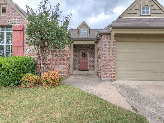 Adorable 3/2/2 in great addition with park, trails and close to shopping/dining! So many updates throughout: paint, floors, gorgeous white kitchen with stainless appliances, granite & open to A-frame living area. Fireplace, split floor plan, and built-ins! Jenks West district. Great backyard fully fenced, nice landscaping, great patio! This home is absolutely move-in ready and adorable!