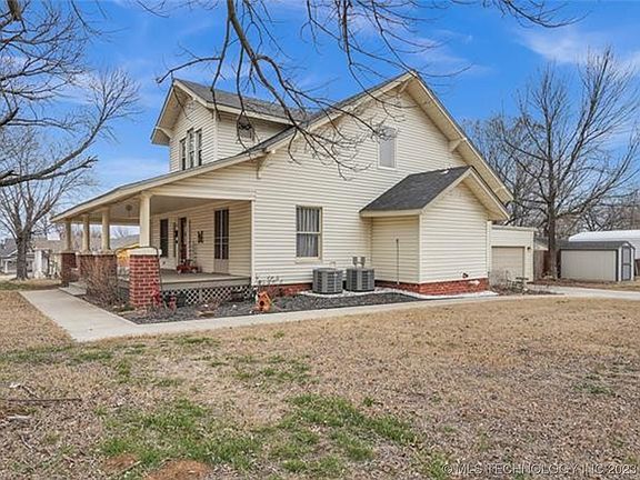 Historical Main Street home in Collinsville, that has been restored to its original beauty with Modern touches. Enjoy the mature trees from your wrap around porch on a large corner lot. One Bedroom down with 3 additional bedrooms & a full bath up. Amazing Farmhouse Kitchen that offers an island w/bar, concrete countertops, and tons of storage. Huge Mud / Laundry room. Large 2 car attached garage and dog run. Come visit this unique home in a small town setting, but convenient to larger communities like Tulsa & Owasso.