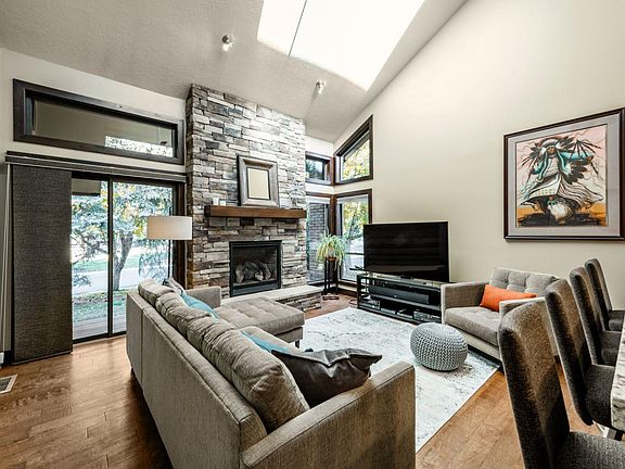 Contemporary and stunning finishes were selected in the remodel of this wonderful townhouse. It is Turn Key ready for you to enjoy. The kitchen features stainless appliances, granite counters and new cabinets. Vaulted ceilings, hardwood floors, and a tall stone fireplace add dimension to the great room. The main floor master bedroom has an en suite luxurious bathroom with heated floors, walk-in shower, and walk-in closet. A second bedroom and full bathroom are also on the main level, in addition to a spacious bedroom/flex space upstairs. Natural light shines throughout this end unit townhome which has three sliding glass doors leading to outside decks and the large yard. You'll enjoy exploring the parks and lakes in the coveted Silver Springs neighborhood. The Canyons base area of Park City Mountain Resort is less than a mile away. Hop on the free Park City bus or depart from the two car garage that is equipped to charge two electric vehicles.