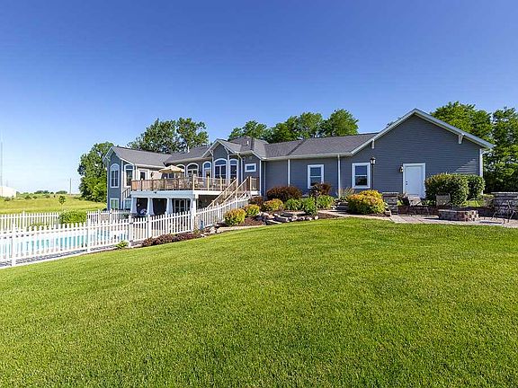 Rare find! Gorgeous, custom built one owner ranch with nearly 4,000 finished sq.ft. and a heated in-ground pool! Over 8 acres to enjoy! Great location between the Quad Cities and Muscatine, IA. Walk out to a large deck and enjoy the countryside! This home also features a finished walk out basement perfect for entertaining. Enjoy the theatre room, wet bar, pool table area with table included, and a spacious rec area. The seller has completed a whole house, well, and septic inspections and providing them free to the buyer. One year AHS home warranty available also! This property has great potential as there are no covenants to keep you from adding those much desired out-buildings you've always wanted for your RV's and other toys.